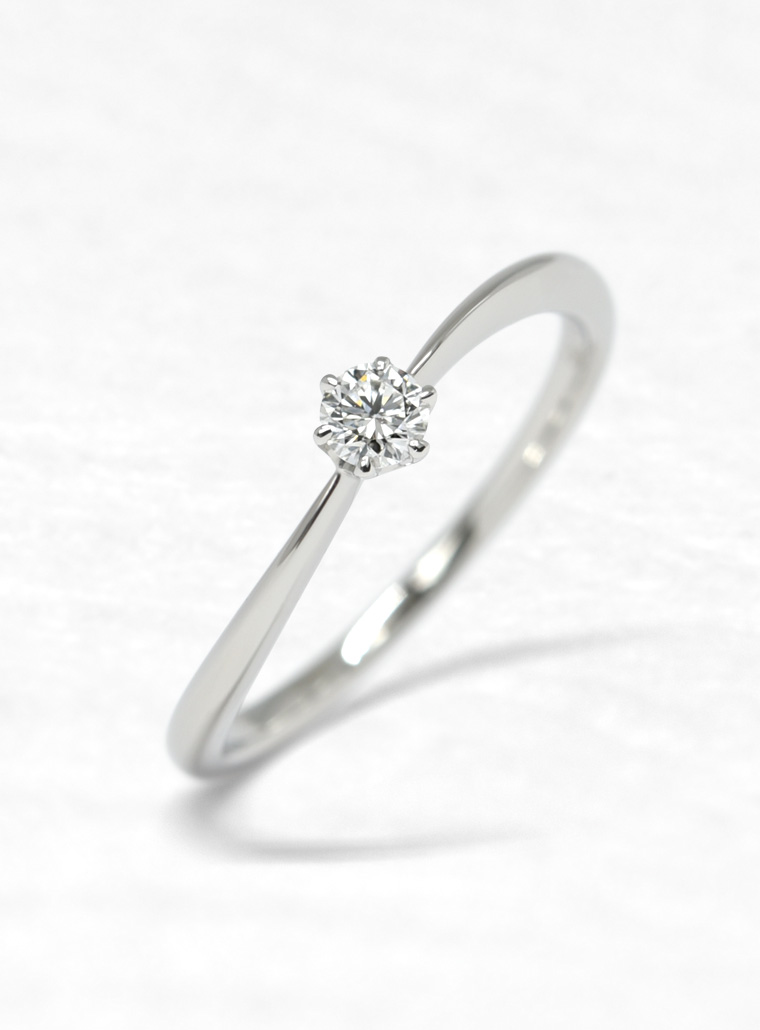 - こひなシリーズ「小町」は0.10~0.12ctのダイヤモンドを使用したミニエンゲージリング。優しい曲線とベーシックな6本爪で支えられたダイヤモンドが日常使いしやすいエンゲージに。