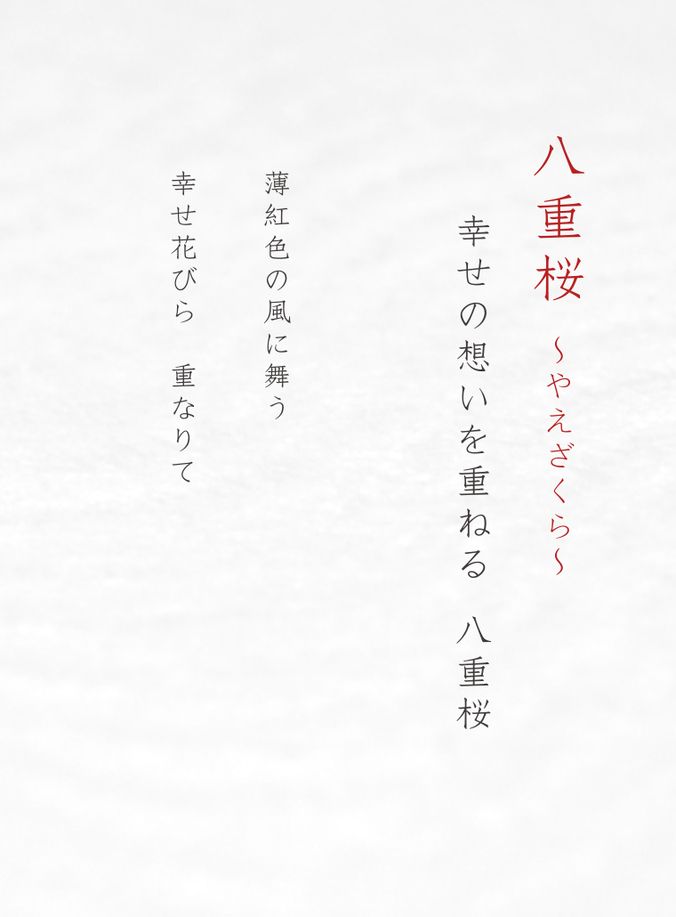 前の指輪 次の指輪 Name 婚約指輪 八重桜2 Data タイプ婚約指輪 名前八重桜 商品番号247-2 素材Pt950 ダイヤモンド0.20ct~ メレダイヤ0.06ct オプション宝石対応可能 製作期間約5週間 価格(枠のみ)¥143,000- 表示価格は税込表記となります。 Point 「八重桜」は八重桜の花びらをモチーフにした婚約指輪(エンゲージリング)。贈り&贈られたふたりに幸せが積み重なりますように。 前の指輪 次の指輪