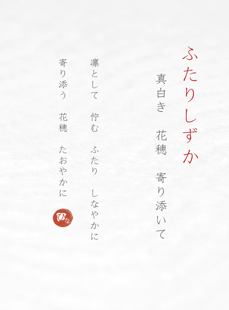 前の指輪 次の指輪 Name 結婚指輪 ふたりしずか Data タイプ結婚指輪 名前ふたりしずか 商品番号174-1 180-1 素材Pt950 メレダイヤ0.01ct オプション宝石174は不可能 製作期間約5週間 価格¥90,200- ¥115,500- 表示価格は税込表記となります。 Point ふたりしずかの花をモチーフにした結婚指輪。ふたりしずかのように寄り添って・・・その気持ちを忘れずに。フタリシズカの花言葉は「いつまでも一緒に」 前の指輪 次の指輪