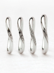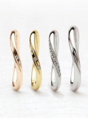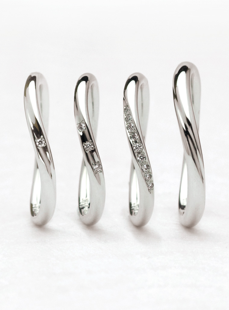 十二単シリーズは、ストレート、V字、ウェーブの3パターンの基本デザインがあります。このリングはウェーブタイプ、ダイヤモンドの数や素材を好みに合わせて製作できるのが特徴。細身ながらも身につけやすいデザインに仕上がっています。