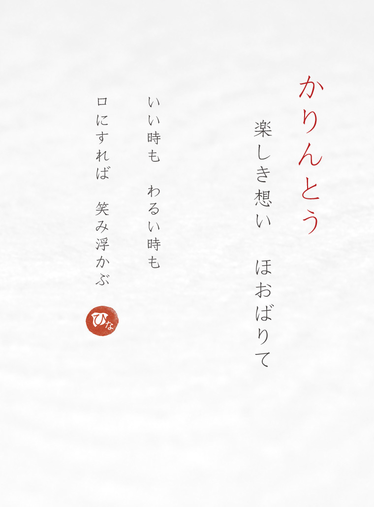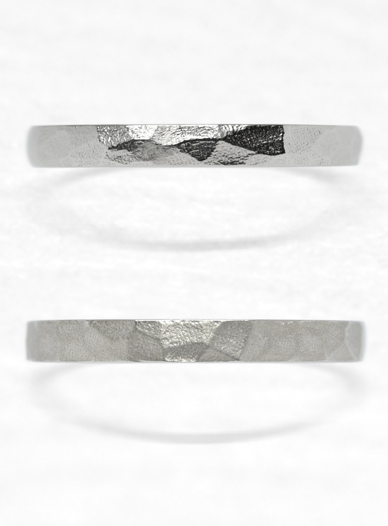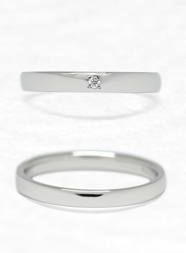 - ひな菓子シリーズ「かりんとう」はリング表面の仕上げにこだわり、リバーシブルとして使える結婚指輪(マリッジリング)です。テリのある表面を持つ女性用と、落ち着いた印象の男性用の仕上げ2種類からお選びいただけます。またクルリと回すことで半分はデザインのないシンプルなリングとなり2つの楽しみ方がある指輪です。